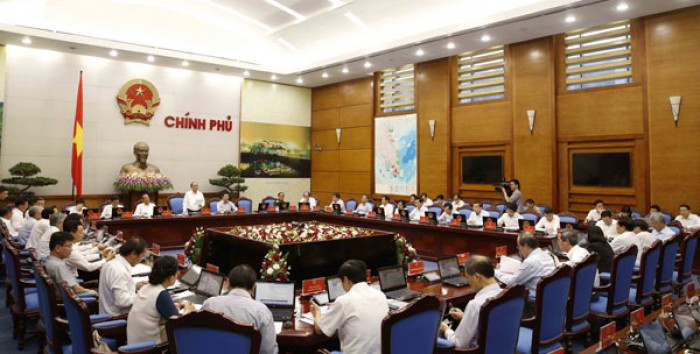 Ngày 1/6, dưới sự chủ trì của Thủ tướng Chính phủ Nguyễn Xuân Phúc, Chính phủ đã họp Phiên thường kỳ tháng 5 để đánh giá, phân tích kỹ tình hình kinh tế - xã hội của đất nước trong tháng 5 và 5 tháng đầu năm. Cũng tại Phiên họp này, Chính phủ xem xét, cho ý kiến về một số dự án luật, Pháp lệnh như: Dự án Luật Thủy lợi, dự án Pháp lệnh giống, cây trồng sửa đổi; Đề án Lộ trình tự do hóa giao dịch vốn của Việt Nam. Trong ảnh: Toàn cảnh phiên họp. Ảnh: Thống Nhất - TTXVN
