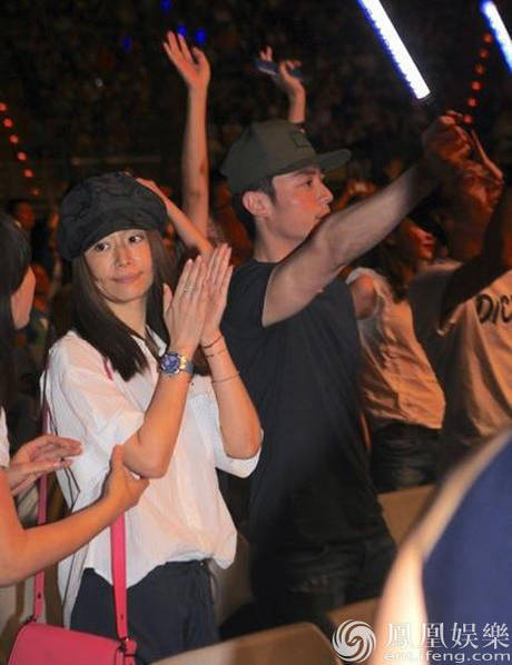 Trong số các fan, nhiều người đặc biệt chú ý đến cặp đôi ngôi sao tên tuổi không kém nữ ca sĩ xứ cảng thơm trên sân khấu là Lâm Tâm Như và Hoắc Kiến Hoa. Cả hai ngồi ở hàng ghế VIP, tay giơ gậy phát sáng và cổ vũ nhiệt tình cho đàn chị. Thi thoảng cả hai cùng lắc lư theo tiếng nhạc và nhẩm hát theo đầy thích thú.