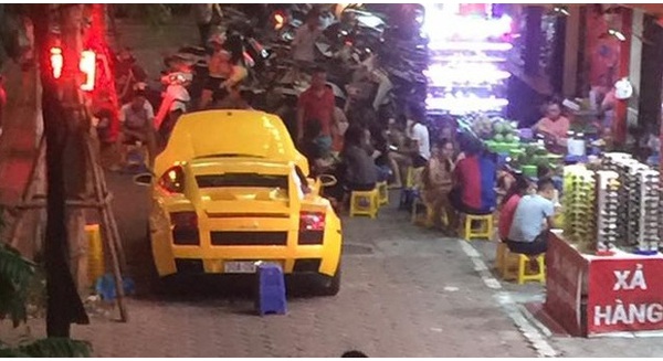 Khi mà giới mê xe tại Việt Nam đang trông ngóng "thần gió" Pagani Huayra trị giá 78 tỷ Đồng của đại Minh "Nhựa" sớm xuất hiện trên phố, thì trên các diễn đàn chơi xe đang sôi sục trước hình ảnh một siêu xe Lamborghini Gallardo đỗ trên vỉa hè, xung quanh là các cửa hàng buôn bán về đêm và bãi đỗ xe máy.